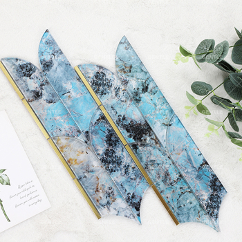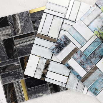 Irregular Shape Blue Stone Texture Glass Mosaics Tile Stainless Steel & Glass Mosaic Tiles for Hotel Decoration