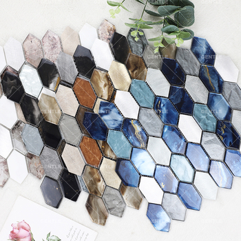 Glass Aluminum Alloy Mixed Art Mosaic Tile Honeycomb Shape Brown Glass Mosaic Tile for Interiors Wall